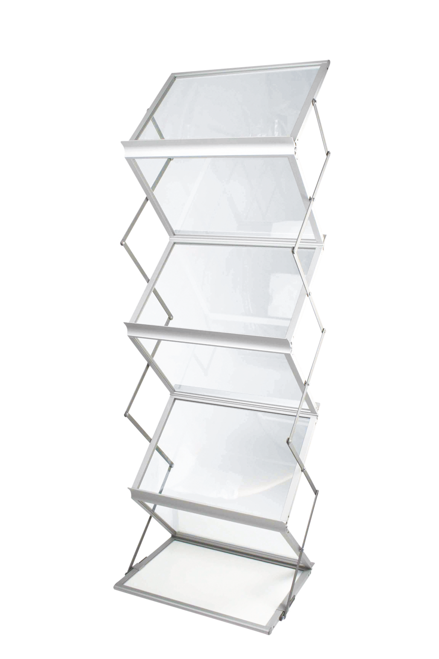 Prospekte, Zeitschriften, Kataloge und Ähnliches werden in dem Zed-Up Lite Prospektständer bestmöglich zur Geltung gebracht. Durch die übersichtliche und ansprechende Art und Weise der Präsentation wird zudem eine einladende Atmosphäre für Ihre Kunden geschaffen. Daher eignet der Prospektständer sich optimal, um beispielsweise in Wartezimmern, Praxen, Hotels und Bürogebäuden genutzt zu werden, aber auch als mobiler Informationsständer für Messen und Sonstiges ist er dank seiner guten Transportierbarkeit bestens geeignet.