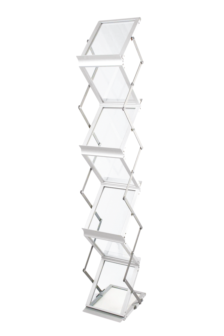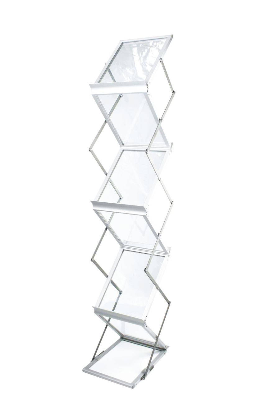 Mit dem Zed-Up Lite Prospektständer von Creative-Medien in Recklinghausen erhalten Sie einen populären Aluminium-Ständer mit insgesamt sechs doppelseitigen Acrylablagen. Der Ständer lässt sich platzsparend zusammenklappen und verfügt außerdem über ein sehr leichtes Gewicht. Zudem ist ein stabiler Koffer inklusive, sodass der Transport besonders einfach und bequem möglich ist. Das macht den Zed-Up Lite ideal, um zu Messen, Events, Präsentationen und sonstigen Veranstaltungen mitgenommen zu werden.